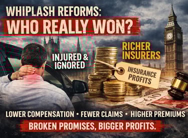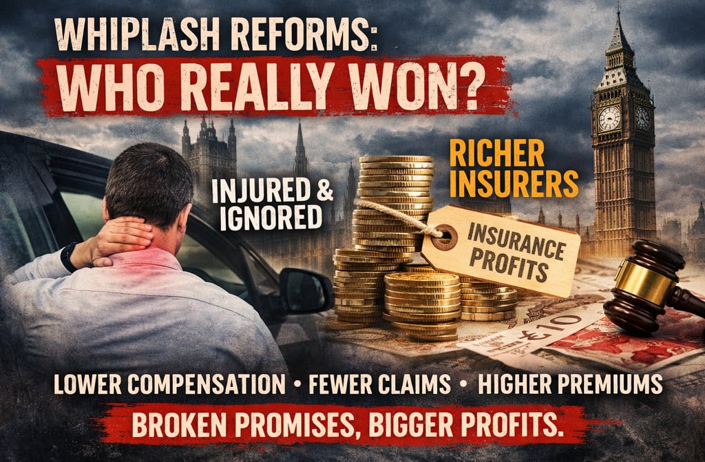 In 2021, the UK government introduced the Whiplash Reforms as part of a sweeping overhaul of how people injured in road traffic accidents can seek compensation. The reforms promised to reduce fraudulent claims, speed up the process, and lower insurance premiums. What’s happened since has been the exact opposite — and it’s people like you, injured through no fault of your own, who are paying the price.
